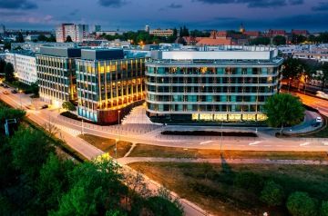 Duże przeszklenia, imponujące atria, lobby na każdym piętrze